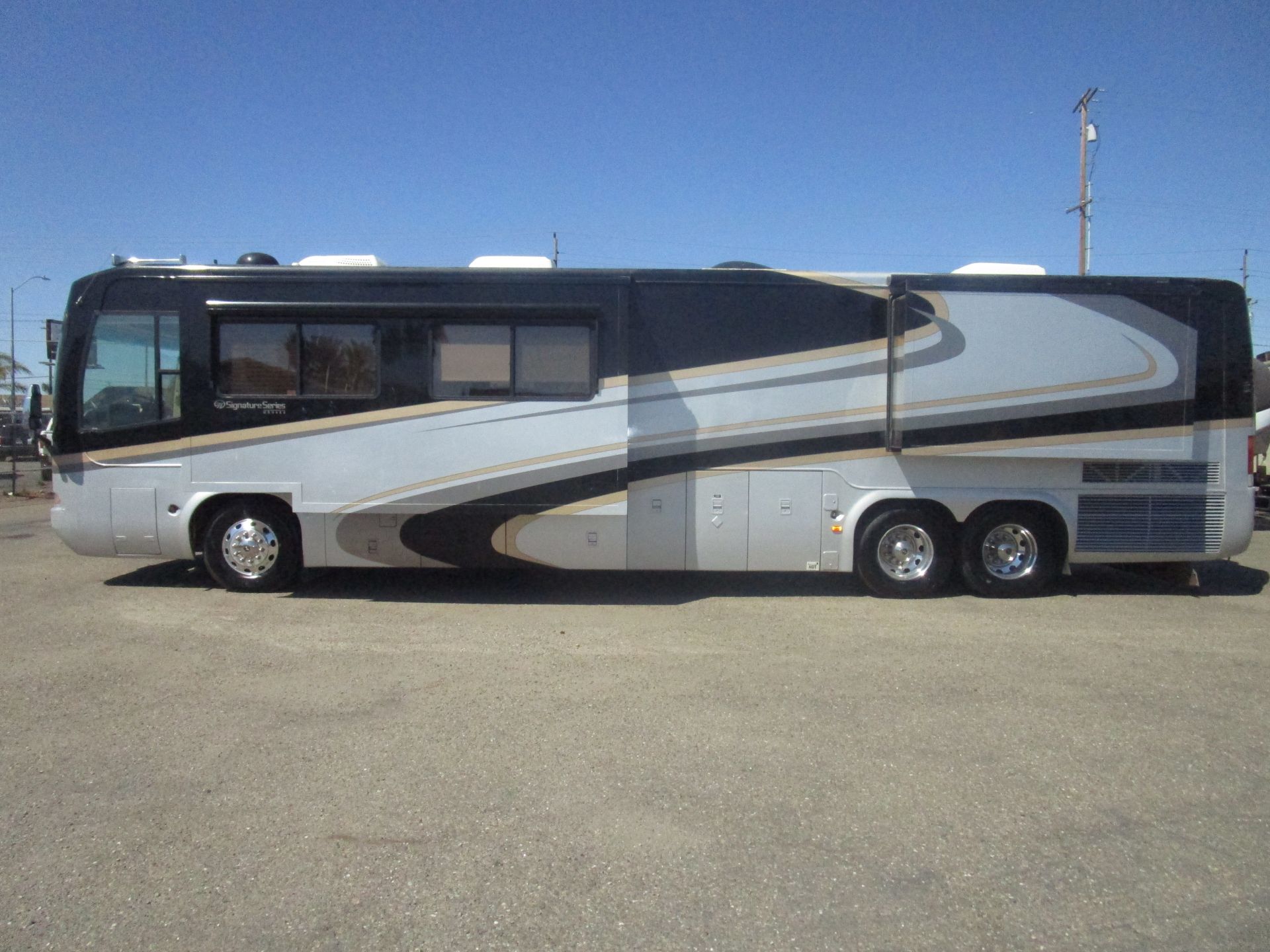 Half A Million Dollar Motor Home When New, Top Of The Line Signature Series Majestic Model, Duel Rear Axle Diesel Pusher With Upgraded ISX525hp Cummins Engine, Allison 4000 Automatic Transmission With 6 Speeds, Keyless Entry, Solar Charging, 3000watt Inverter, 12.5kW Diesel Generator, Accent Lighting Throughout, Beautiful Wood Cabinetry, Washer/Dryer Combo, 2 Slides, Sleeps 4, Duel Power Capt. Chairs, Carpeted and Tiled Flooring, Ar Suspension, Manabloc Water System, 10,000lbs Towing Receiver, Custom Shower Enclosure, Powered Sun Shades. Call Owner For More Details.