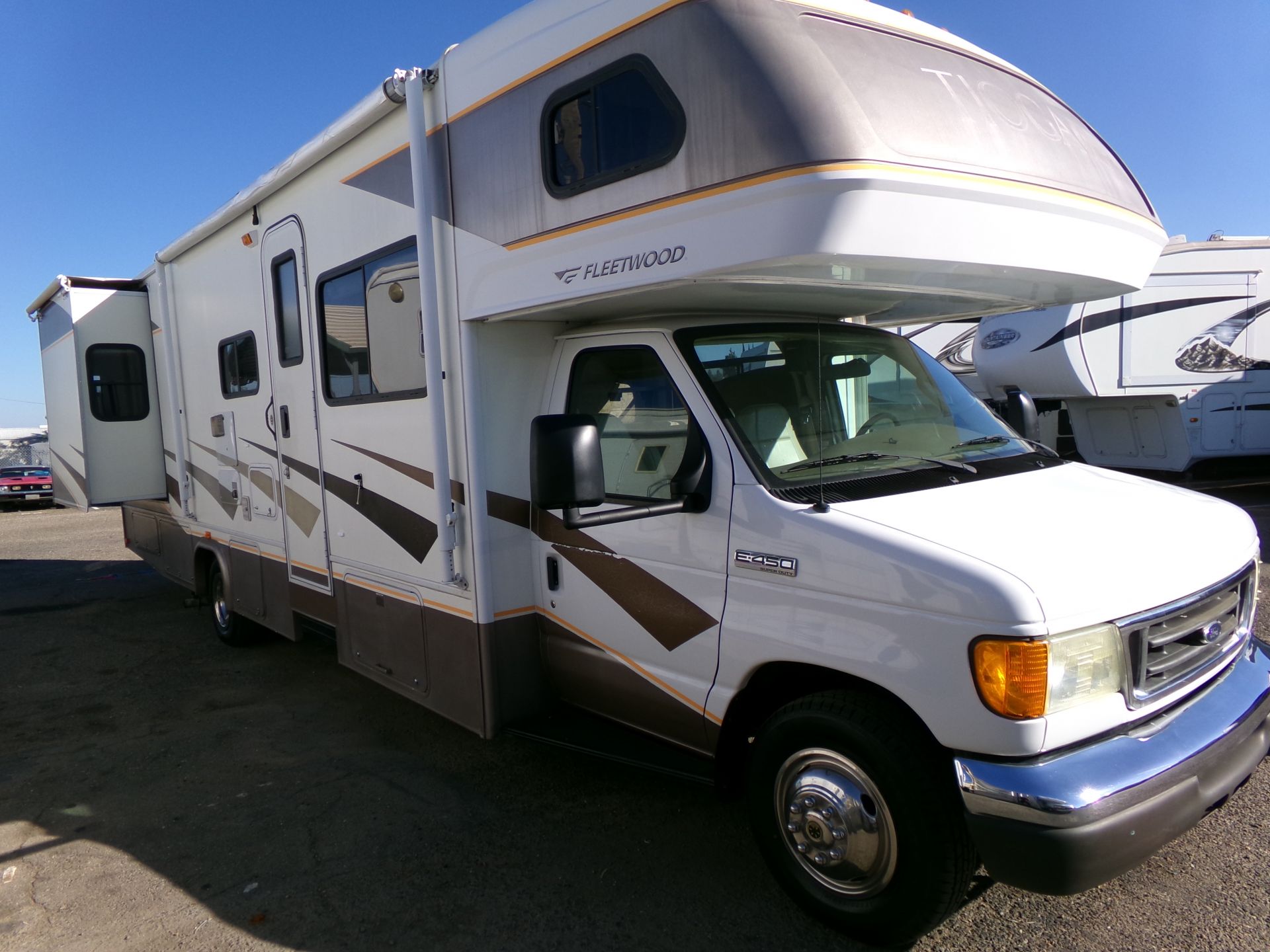 2007 Fleetwood Tioga Class-C motor home, V-10 Ford Gas engine, automatic transmission, 2 slides, sleeps 8, 4k generator, a/c & heat, lots of storage, drop down front queen bed, walk around queen bed in rear bedroom, sofa sleeper, dinette.