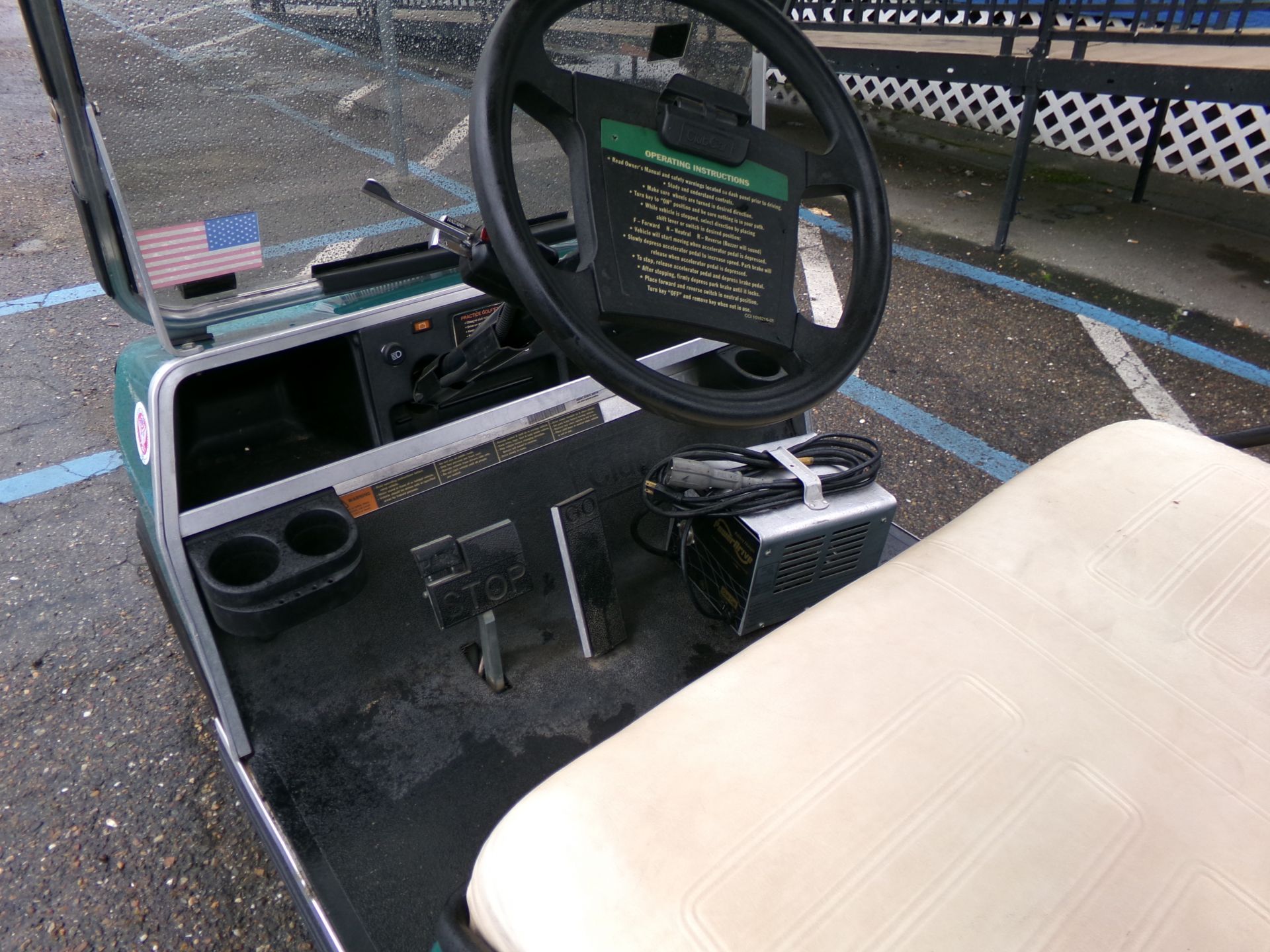 1996 Club Car Electric Golf Cart, 48 volt, windshield, good batteries, custom wheel covers, deluxe light package, charger