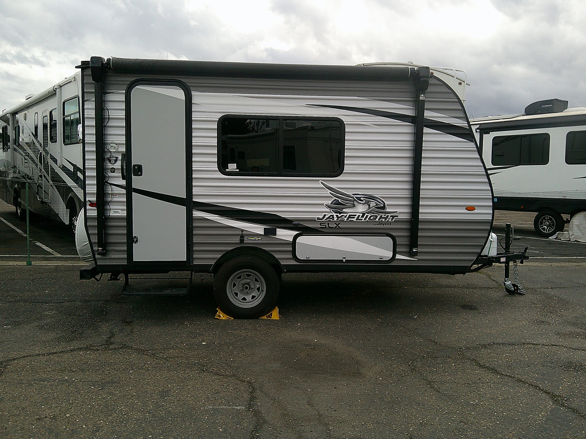 2020 Jayco Jayflight SLX 145RB Travel Trailer, 18', fully self contained, awning, hitch/ sway bar, sleeps 3, kitchenette with stove, fridge, microwave, sink, convertible dinette, a/c, tv, am/fm sirius radio, private restroom with tub and shower, closet, easy to tow and weighs 2415 lbs. Lodi Park and Sell on E Kettleman Lane, open everyday!