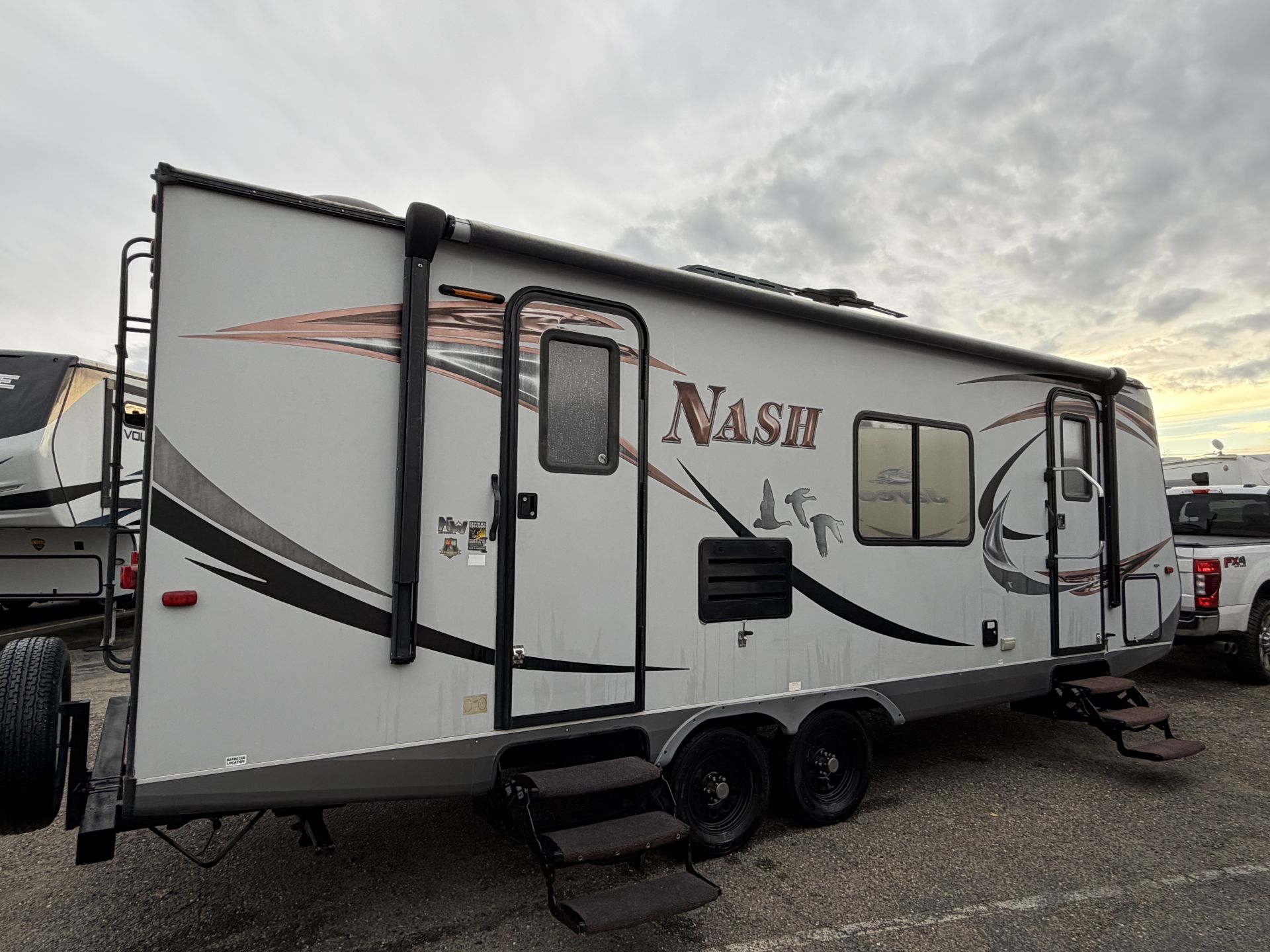 2015 Northwood Nash 24M Travel Trailer, 24', 5061 lbs, one slide, electric awning, double entry doors, fully self contained, 1/2 ton towable, 4 seasons northwest package, complete tow package, diamond plate front shield, walk around queen master, rear private bathroom, combo slide out, sofa/ dinette sleeper, roof a/c, heat, stove/oven, microwave, fridge, freezer, everything works, non smoker, no leaks.