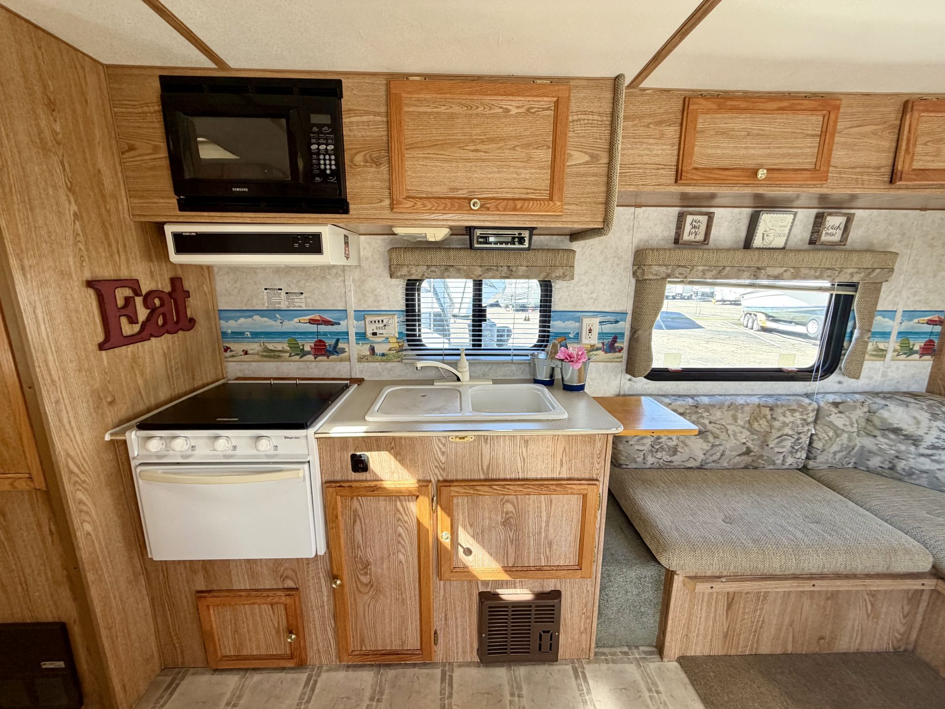 2003 Thor Tahoe 18DT Hybrid Travel Trailer, 25', 1/2 ton towable with a base weight of 3870 Lbs, sleeps 8, kitchenette with fridge oven/stove, microwave, u shaped sofa, a/c, private restroom with shower over tub, pass through storage, everything works, come take a look!